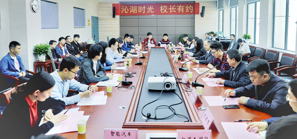 武科大网讯(记者陈孖川)“创新点燃青春,挑战铸就梦想”4月17日,第十一期“沁湖时光·校长有约”在青山校区举行。校长倪红卫,相关职能部门负责人,校赛挑战杯前12名项目团队负责人以及智能汽车协会、赤骥车队、机器人团队、大学生科协负责人出席会议。学生工作处处长刘抗强主持会议。