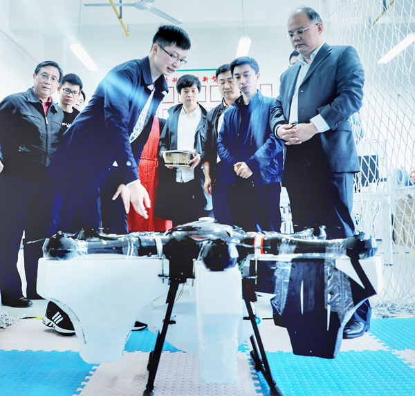 倪红卫向与会学生代表颁发纪念品,并参观了信息学院“挑战杯”团队项目的实物模型,听取了团队阶段性成果汇报。